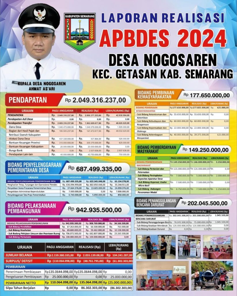 Pengumuman Laporan Realisasi APBDes 2024 Desa Nogosaren
