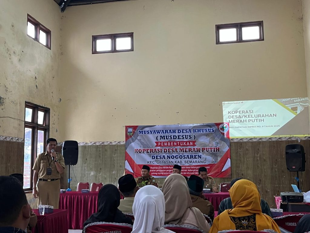 Nogosaren โ 19 Mei 2025Pemerintah Desa Nogosaren, Kecamatan Getasan, Kabupaten Semarang, menggelar Musyawarah Desa Khusus (Musdesus) dalam rangka pembentukan Koperasi Merah Putih Desa Nogosaren. Kegiatan ini merupakan tindak lanjut dari Implementasi Instruksi Presiden (Inpres) No. 9 Tahun 2025 tentang percepatan pembangunan ekonomi berbasis masyarakat di tingkat desa dan kelurahan. Acara yang berlangsung di Balai Desa […]