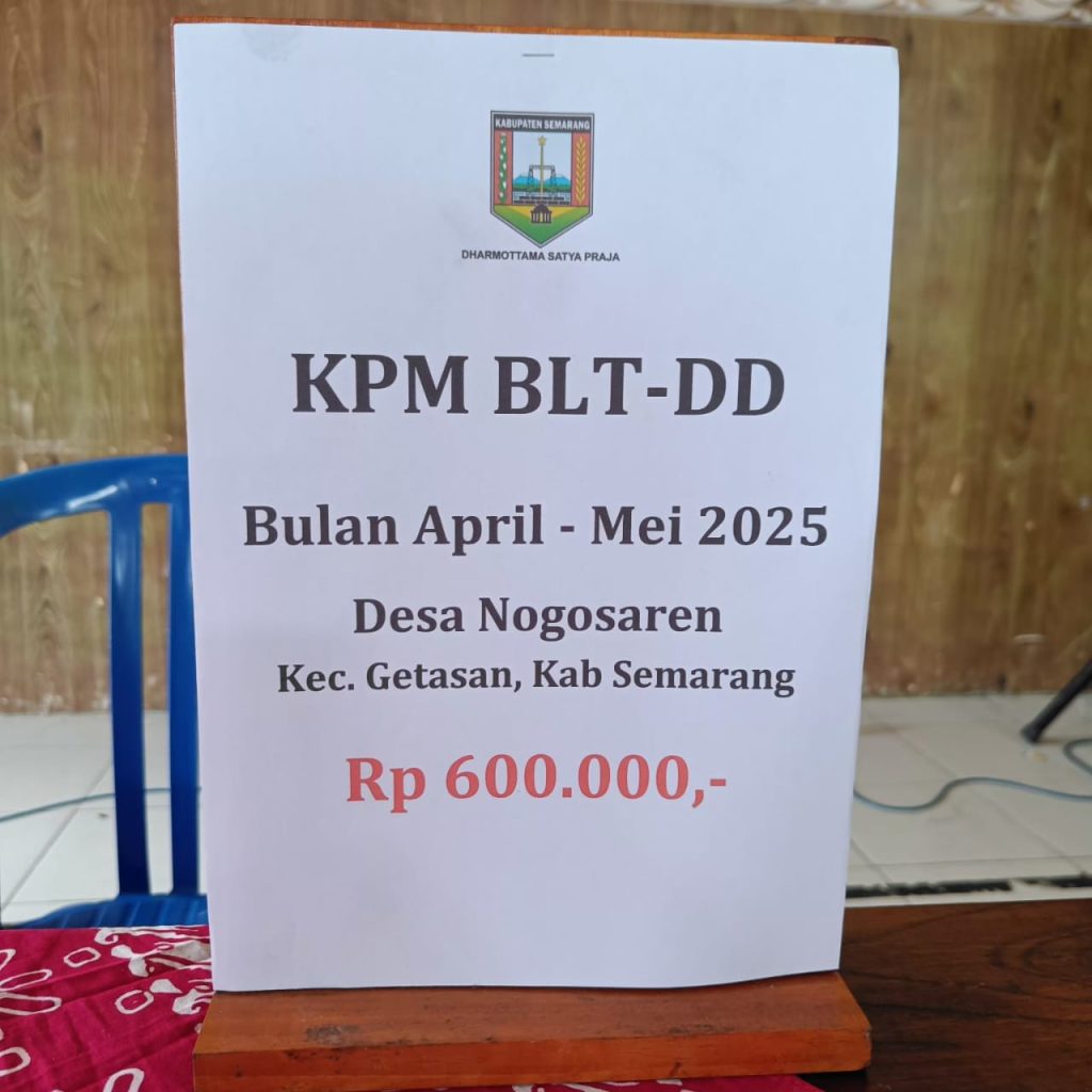 Nogosaren, Kecamatan Getasan โ Kabupaten Semarang, 28 Mei 2025 โ Pemerintah Desa Nogosaren kembali menyalurkan Bantuan Langsung Tunai Dana Desa (BLT-DD) kepada warga yang masuk dalam kategori Keluarga Penerima Manfaat (KPM). Untuk periode April hingga Mei 2025, sebanyak 23 KPM menerima bantuan tunai sebesar Rp 600.000,- per keluarga. Penyaluran dilakukan di Balai Desa Nogosaren, Kecamatan […]